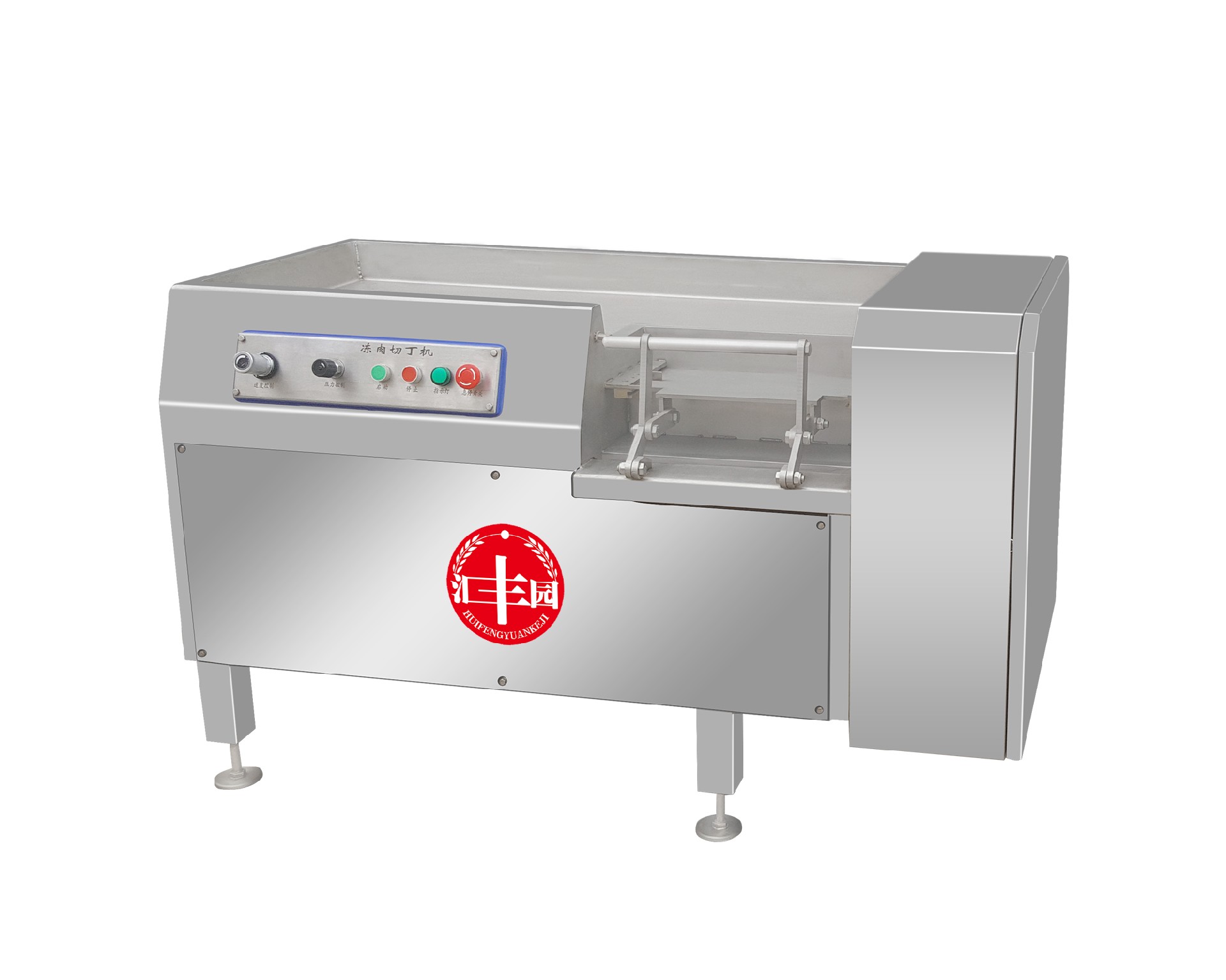 此切丁机结构紧凑,采用优化卫生设计,机壳,切割刀栅均采用不锈钢材料制成,切刀采用双刃切削,工作效率高,经久耐用;肉丁规格5/10/15/20/25尺寸等,是食品加工中的必备的设备。 推杆进行无级调速以满足不同切割长度的要求,适用于整块微冻肉或根茎类的蔬菜一次性切成片丝段状。主切-2度左右冻肉。